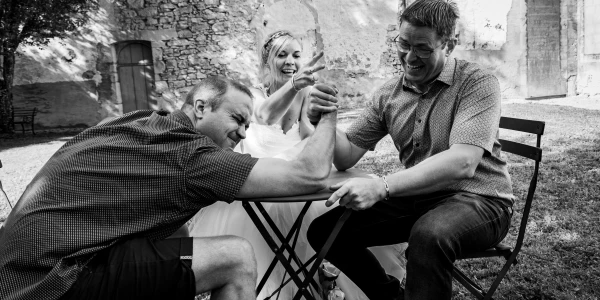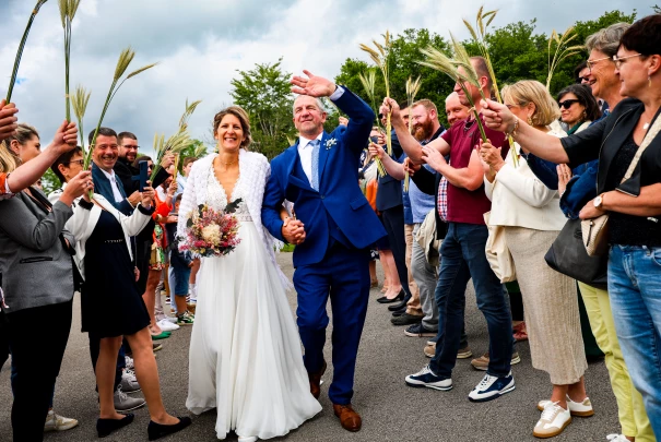 Je capture chaque moment clé jusqu’à la fin du vin d’honneur, où les éclats de rire et les premiers pas de danse annoncent le début de la fête.